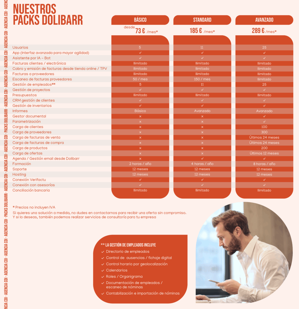 Por eso, Dolibarr se compone de módulos que cubren todas y cada una de las necesidades de una empresa como por ejemplo,